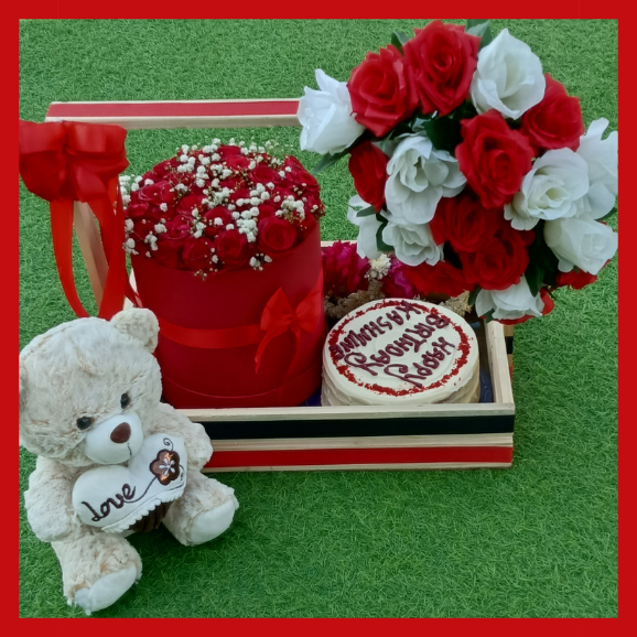Teddy Bear With Heart Box Of Roses – Giftinday