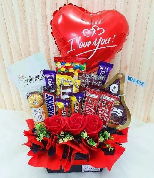 Best OF Love 😕 10 mix Chocolate , Her shies Kisses Chocolate , M & m and love you balloon With Roses? In Box Red Packing?