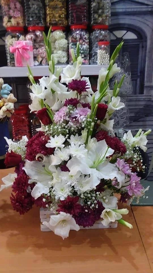 Imported Basket : Lilyes With Daisy And Gladious Arrangment in Basket?