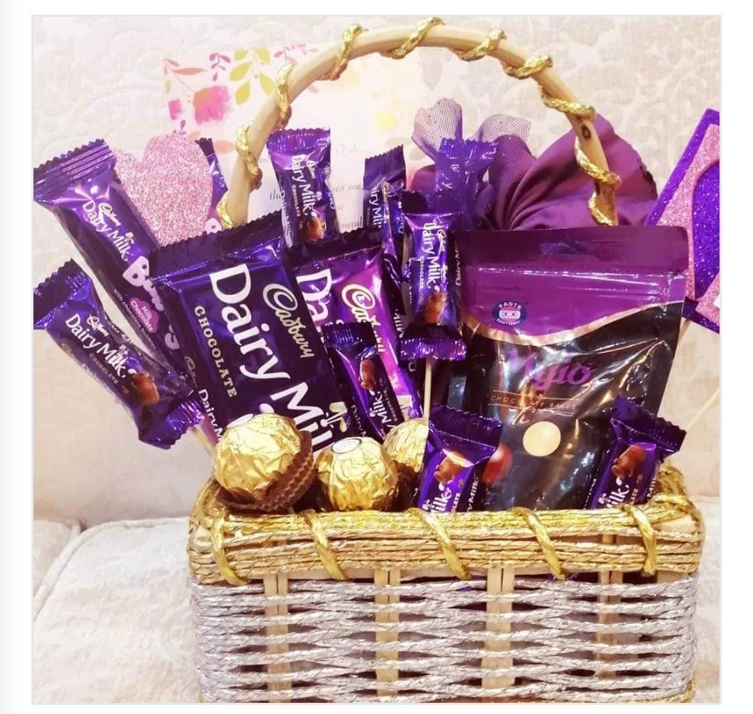 Dairy Milk Diffrent Flavor? Chocolates And Ferraro rocher Arrange In Basket