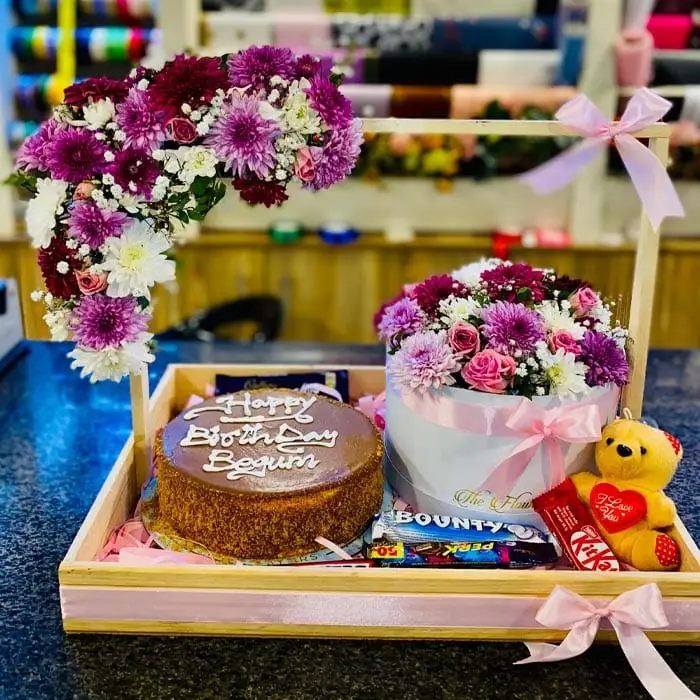 Decorated Flower basket with cake