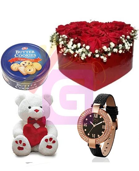 - 3 Dozen Red Roses In Heart Box With Gypso