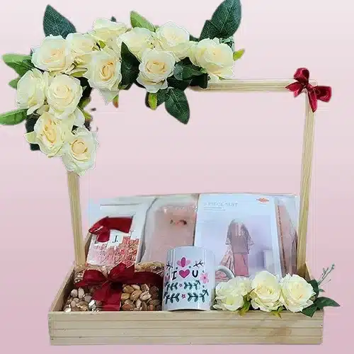• Wooden Tray with Flower Décor: An elegant base that enhances the beauty of the gift set, making it a perfect centerpiece for any occasion.